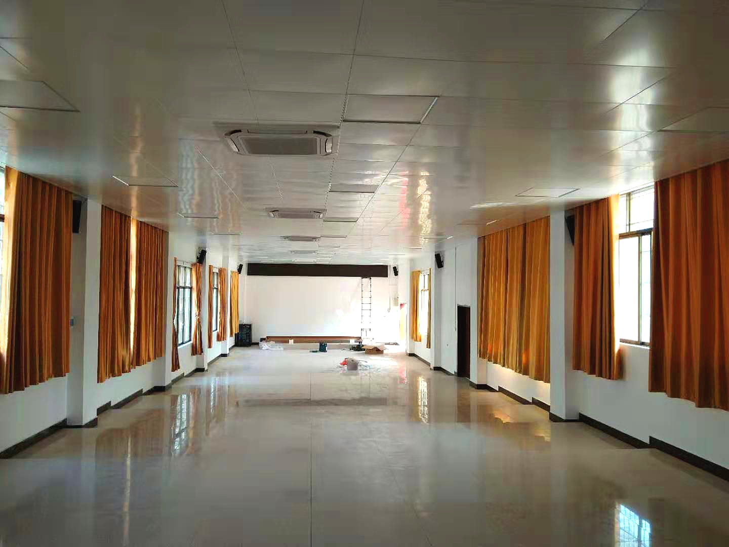 為了使整個報告廳的聲壓級更加的均勻動聽,選用6只KH-44(4x4"線性音柱)充當輔助擴音,均勻地壁掛安裝在廳堂前中后場兩側墻壁上,從而提升整個房間的語言和音樂清晰度。